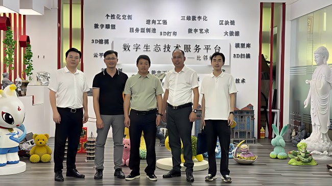 2026年4月14日,赣南师范大学美术与设计学院党委书记钟起万、辅导员张少卿一行莅临比邻三维考察交流,泉州晚报社经济新闻部主任邱和军陪同到访。公司总经理林逢春热情接待并详细介绍企业发展、3D 打印技术应用、文创定制、展陈雕塑等核心业务与标杆案例。